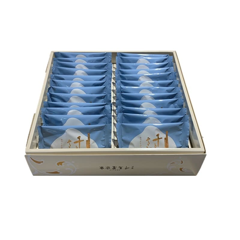 本千鳥さぶれホワイトチョコレート24枚入【クール便】 円(税込) ※こちらのお品物は溶けやすい商品の為、 クール便にてお届けします。 ・お日持ち:発送日を含めて約20日 ・特定原材料:小麦・卵・乳・大豆・アーモンド・ごまを含む さくっと香ばしい本千鳥さぶれをベルギーカレボー社のホワイトチョコレートで贅沢に包みました。期間限定商品です。 選び抜かれた味わいを、愛らしい千鳥のかたちとともにお楽しみください。 ※こちらのお品物は溶けやすい商品の為、クール便にてお届けします。予めご了承いただけます様お願い申し上げます。 割れてしまう可能性がある為、箱入りのみの販売となります。 数量 のし・名入れの指定 --- <のしの場所>(選択) ---のしの場所:指定なし外のし内のし--- <のしの種類>(選択) ---のしの種類:のしなし御祝内祝(婚礼)内祝(婚礼以外)御礼紅白無地のし御供粗供養志(弔事)黄白無地のし御中元御歳暮御年賀のしの種類:その他(備考欄で指定)--- <のしの名入れ>(選択) ---のしの名入れ:なしご注文者様の苗字ご注文者様のフルネームご注文者様の下のお名前のしの名入れ:その他(備考欄で指定) ※「のしの種類」もしくは「のしの名入れ」で「その他」を選んだ方は、ご注文者情報入力画面の「備考欄」にてご指定ください。 のし・名入れについて カートに入れる