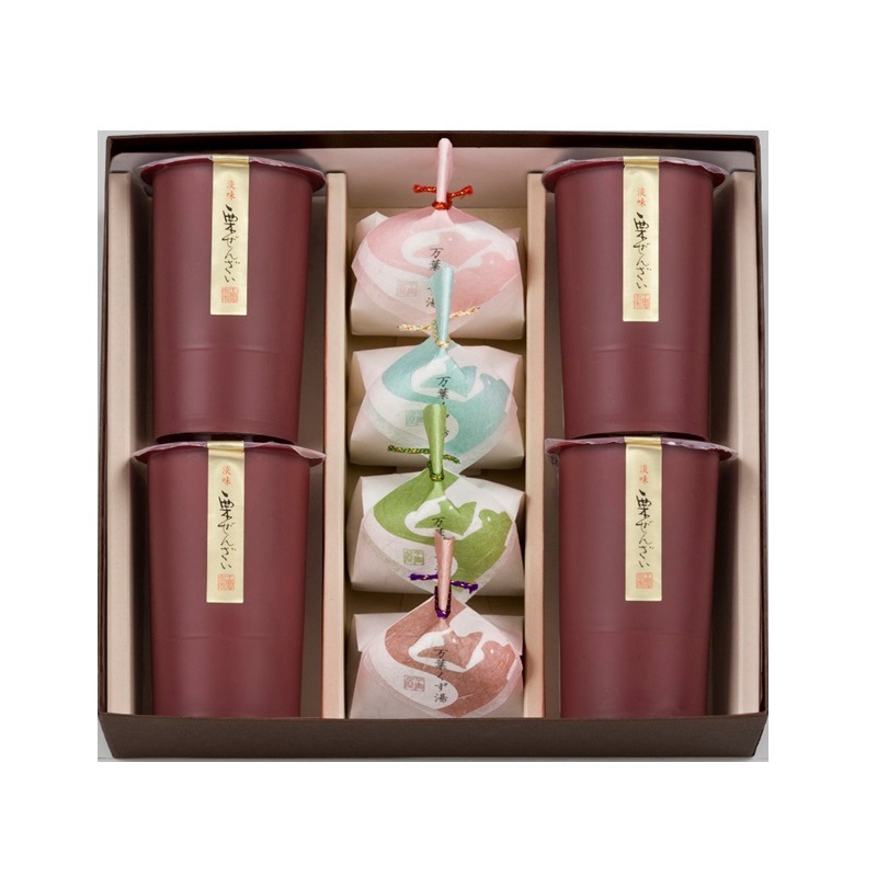 [RK2]栗ぜんざい・くず湯詰合せ(淡味栗ぜんざい4、桜くず湯1、くず湯1、抹茶くず湯1、しるこくず湯1) 円(税込) ・お日持ち:発送日を含めて約90日 ・特定原材料:なし 厳しい寒さに備えて身体が温まる滋味をご用意致しました。 上品な甘さの栗ぜんざいと、上質のくず湯を詰め合わせたお日持ちのするお品です。 プレーン、さくら、抹茶、しるこの4種のくず湯が入っております。 ※売れ行きにより販売終了予定日が早まる可能性がございます。 お早めにご予約くださいませ。 数量 のし・名入れの指定 --- <のしの場所>(選択) ---のしの場所:指定なし外のし内のし--- <のしの種類>(選択) ---のしの種類:のしなし御祝内祝(婚礼)内祝(婚礼以外)御礼紅白無地のし御供粗供養志(弔事)黄白無地のし御中元御歳暮御年賀のしの種類:その他(備考欄で指定)--- <のしの名入れ>(選択) ---のしの名入れ:なしご注文者様の苗字ご注文者様のフルネームご注文者様の下のお名前のしの名入れ:その他(備考欄で指定) ※「のしの種類」もしくは「のしの名入れ」で「その他」を選んだ方は、ご注文者情報入力画面の「備考欄」にてご指定ください。 のし・名入れについて 品切れ